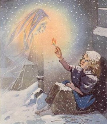 Աղջիկը շատ էր մրսել և իր տաքանալու միակ միջոցը լուցկին էր: Նա գնում է մի պատի տակ նստում և սկսում լուցկիները վառել: Առաջին լուցկին վառելիս նա տեսիլք է տեսնում, թե իբրև տաք կրակը նրան ձերմացնում է , սակայն լուցկին հանգչում է: Նա վառում է երկրորդը, այս անգամ նա մի սենյակում էր գտնվում և իր դիմաց դրված էր ճոխ սեղան: Երրորդ լուցիկն վառելով նա տեսնում է շքեղ զարդարված և տաք տուն : Հենց այս ժամանակ նա նկատում է , որ ինչ-որ մեկը մահացավ, քանի որ երկնքից աստղ էր գլորվել իր ետևից հետք թողնելով: Նա տեսիլք է տեսնում , որտեղ իր մահացած տատիկն էր: Աղջիկը այնքան էր կարոտել տատիկին, որ ամբողջ լուցկիները վառում է : Տատիկը պարզում է ձեռքը և նրանք միասին գնում են դիմավորելու Ամանորը:
